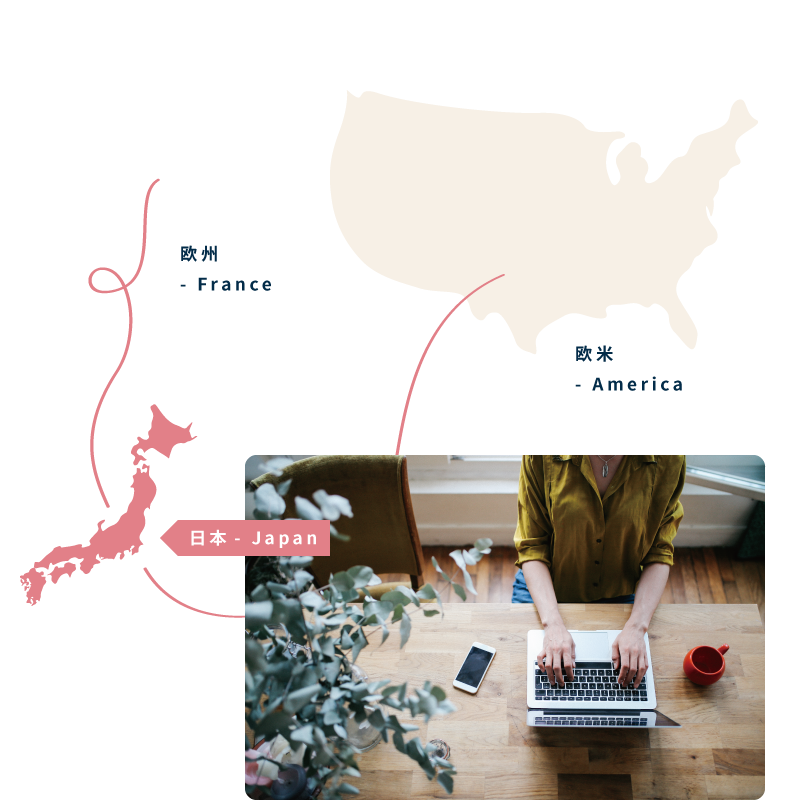 日本からアメリカやフランスとをつなぎ、日本企業の方々のビジネスをご支援します。